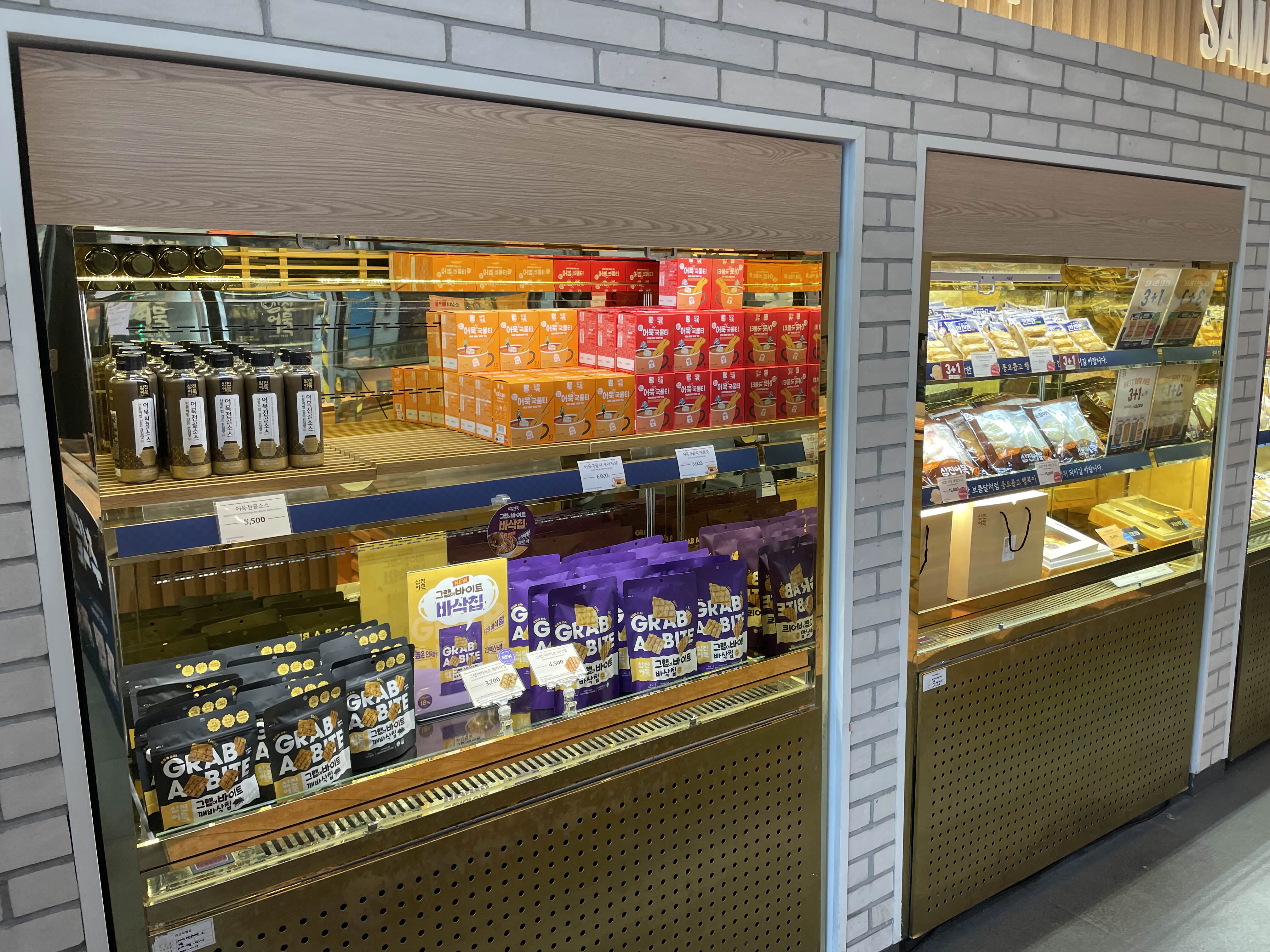 삼진어묵 부산역광장점은 매장이 넒고 깨끗해요.